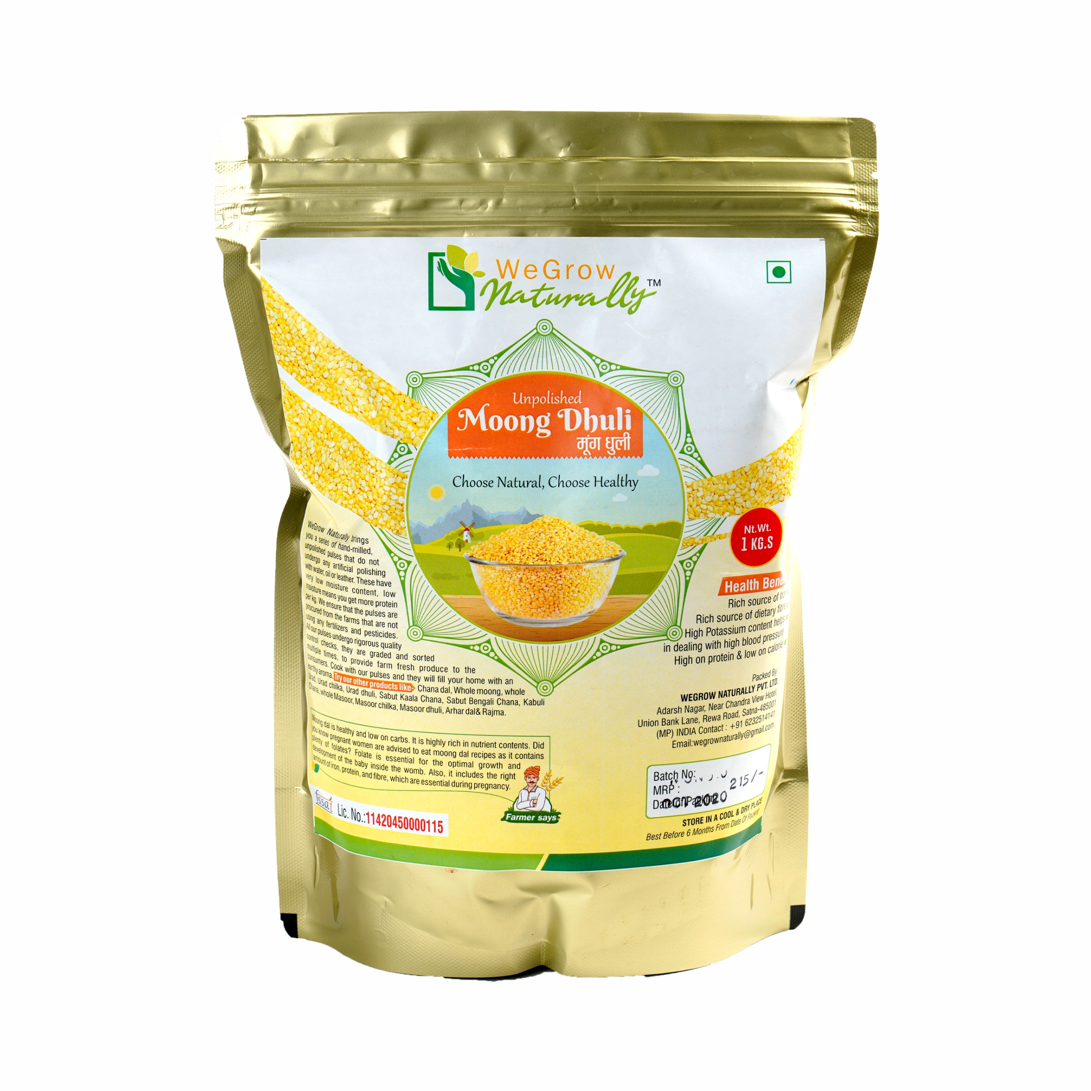 WeGrow Naturally brings you a series of hand-milled, unpolished pulses that do not undergo any artificial polishing with water, oil or leather. These have very low moisture content, low moisture means you get more protein per kg. We ensure that the pulses are procured from the farms that are not using any fertilizers and pesticides. All our pulses undergo rigorous quality control checks, they are graded and sorted multiple times, to provide farm fresh produce to the consumers. Cook with our pulses and they will fill your home with an earthy aroma. Try our other products like- Chana dal, Whole moong, whole Urad, Urad chilka, Urad dhuli, Sabut Kaala Chana, Sabut Bengali Chana, Kabuli Chana, whole Masoor, Masoor chilka, Masoor dhuli, Arhar dal & Rajma.